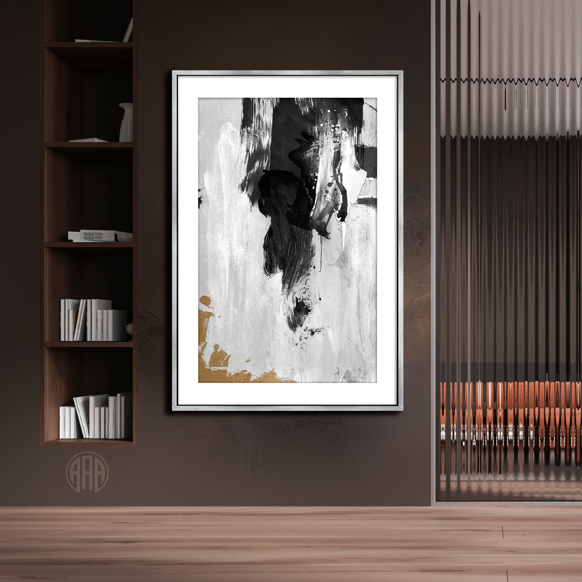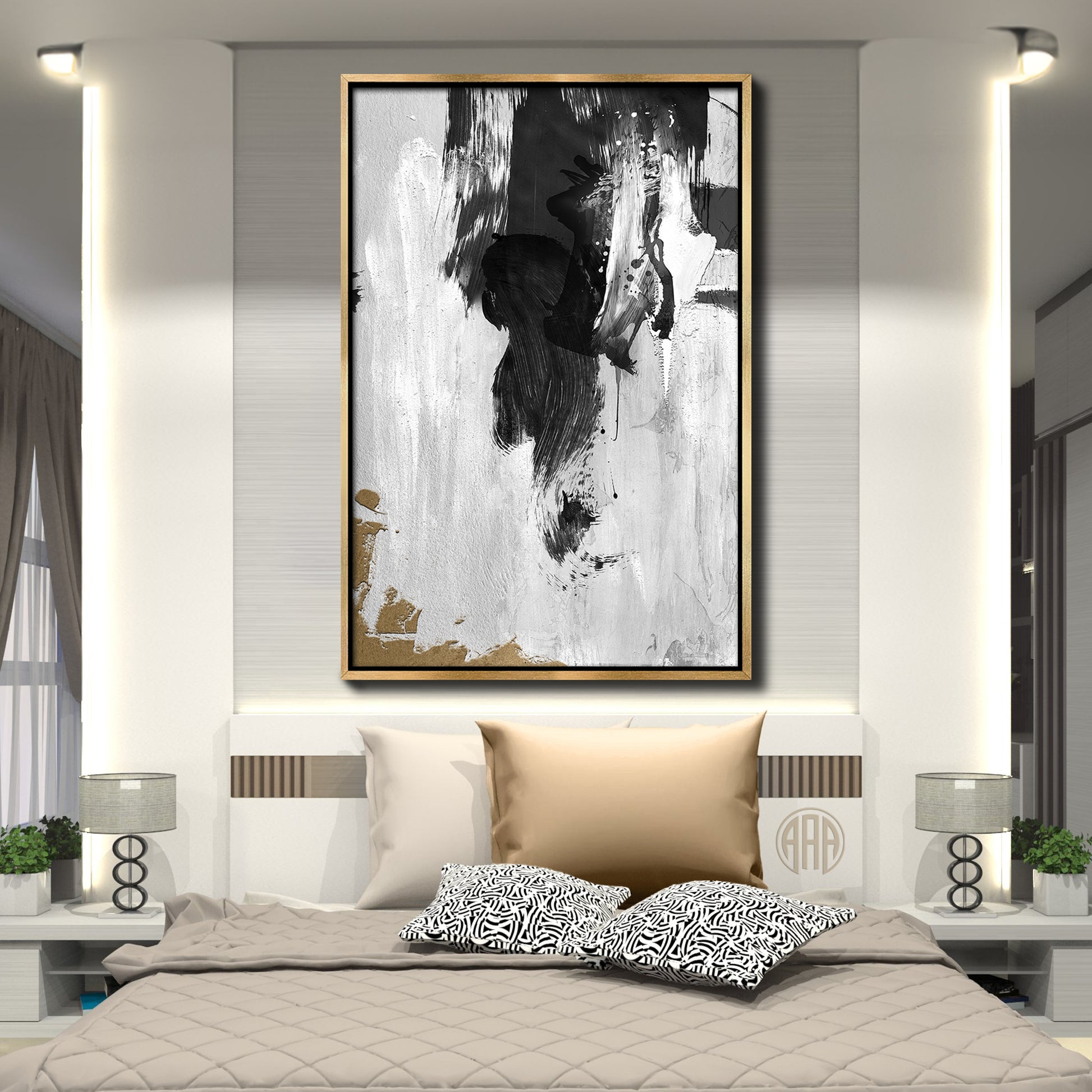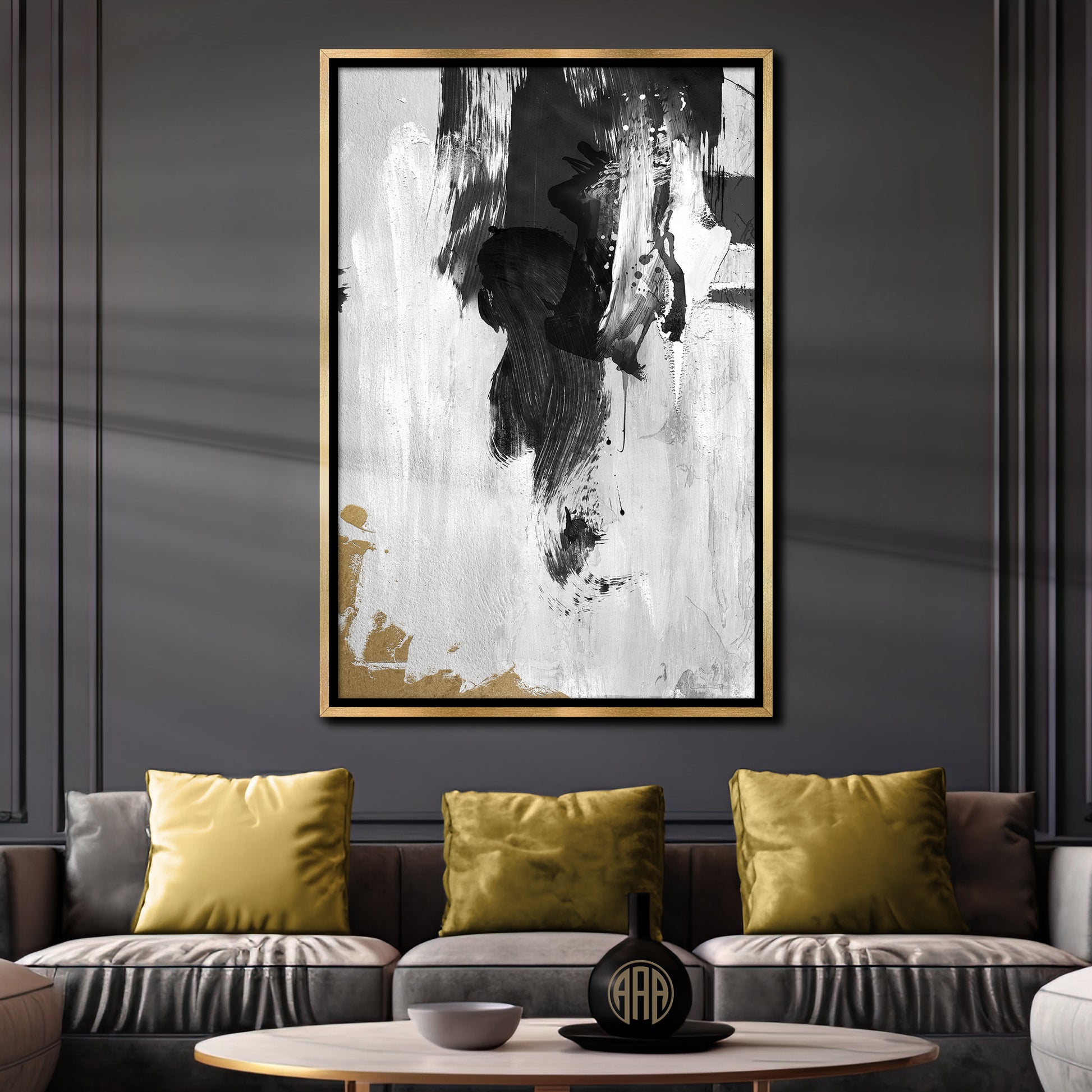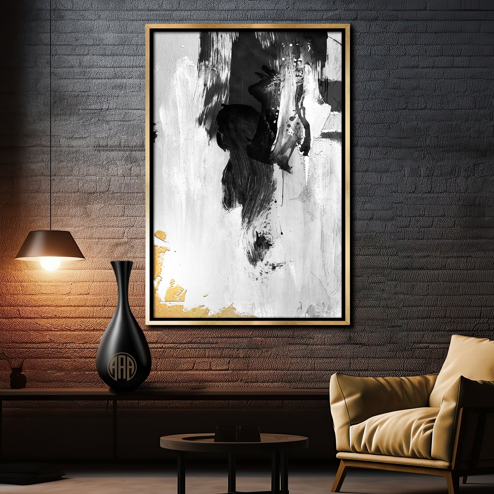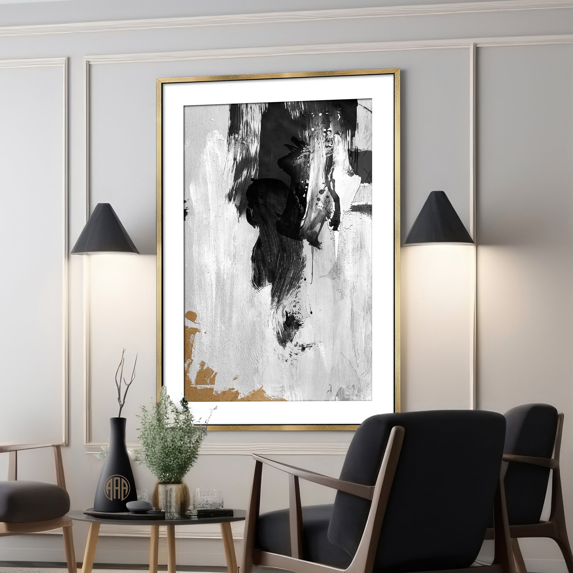 It also pairs up well with several others I've done in a minimalist style with only black, white and gold. Abstract wall art is perfect for modern interiors that embrace contrast and emotion. It brings texture, mood, and depth into minimalist spaces — ideal for living rooms, home offices, or bedrooms.