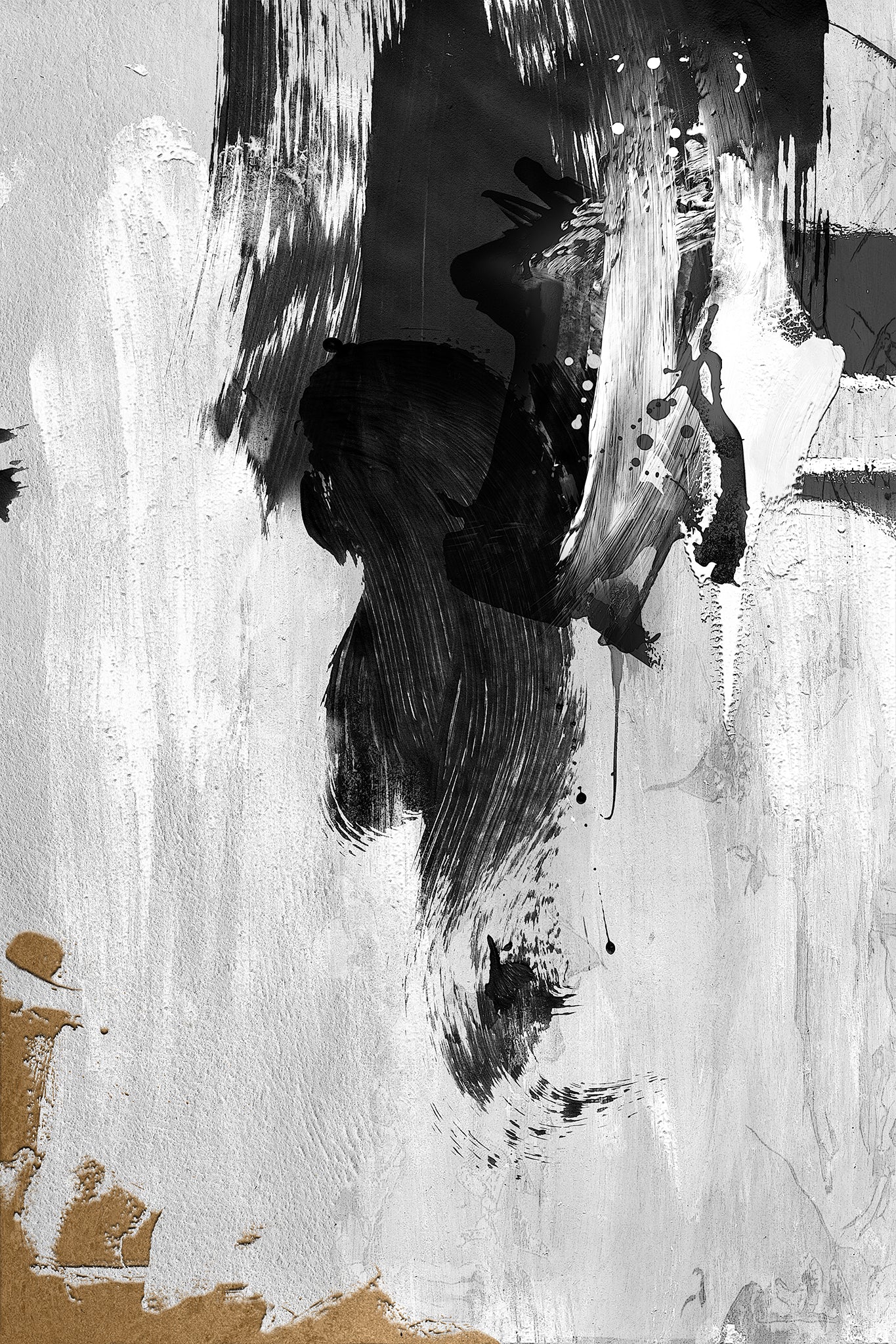 Dark Strike of Desire This one came together rather fast and that's exactly what I was trying to do. Fast and minimalistic with just white, black and gold. I started with layered whites and greys, then carved through with black, letting each stroke stay raw and expressive. A few splatters and suddenly it felt alive, a little unhinged, a little seductive. There’s a movement to it that feels instinctual and spontaneous I hope.