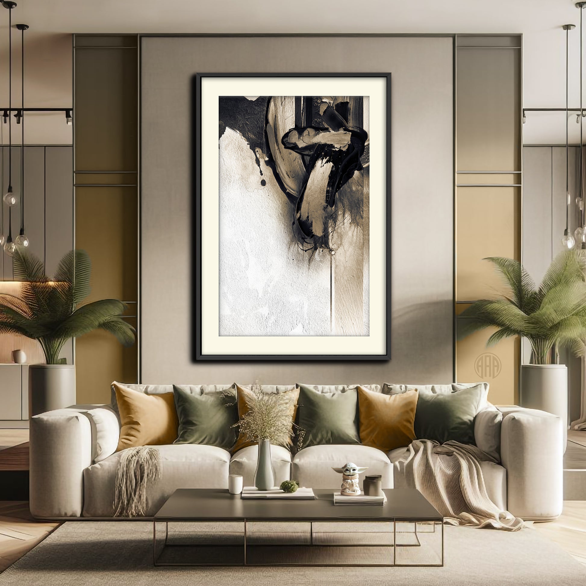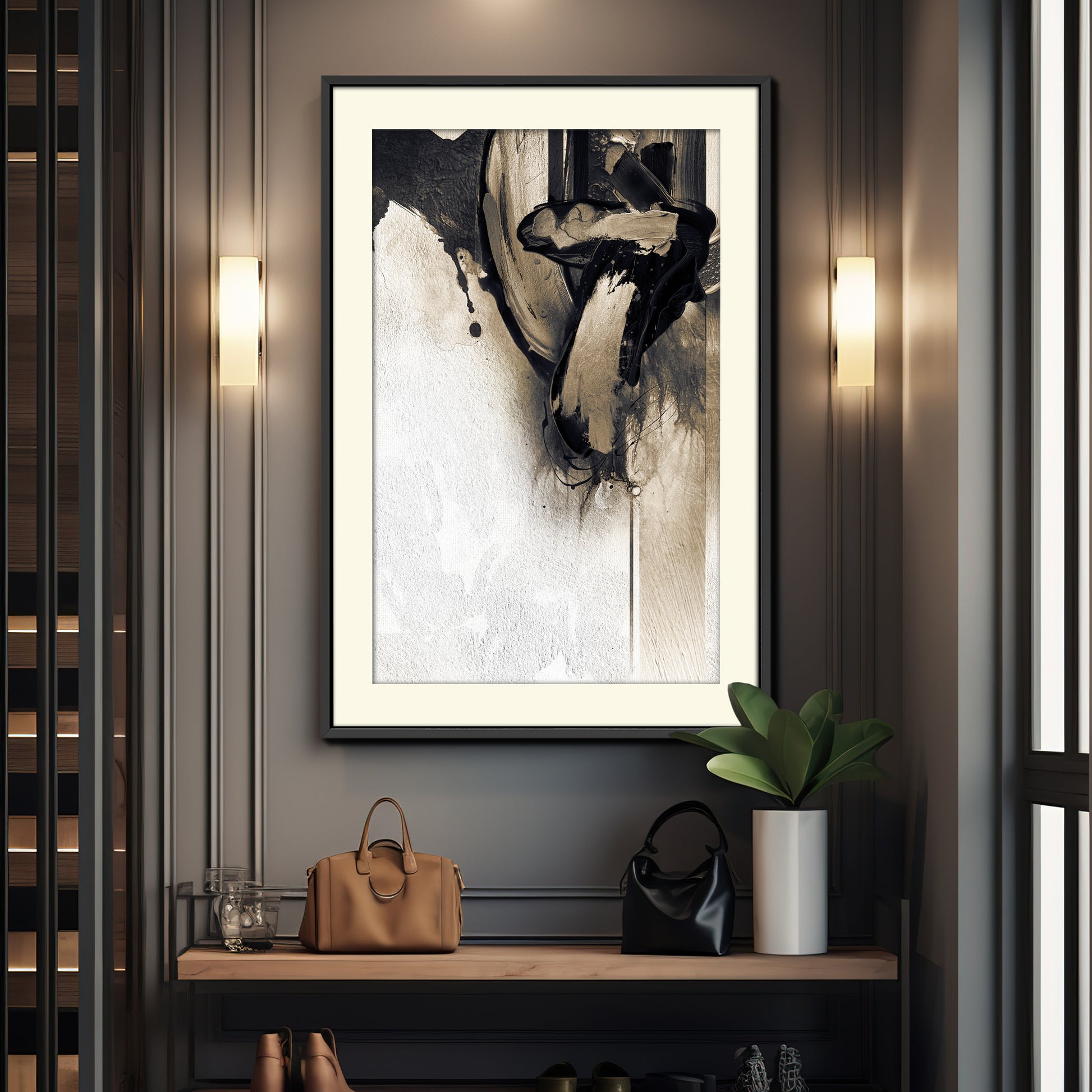 "Ebony and Gold Dance" is a stunning interplay of rich ebony hues and shimmering gold accents that create a rhythmic flow across the canvas. The dynamic brushstrokes and metallic touches evoke a sense of movement and energy, drawing the eye to every intricate detail. This piece captures the elegance of modern artistry while offering a bold statement that enhances any sophisticated décor.