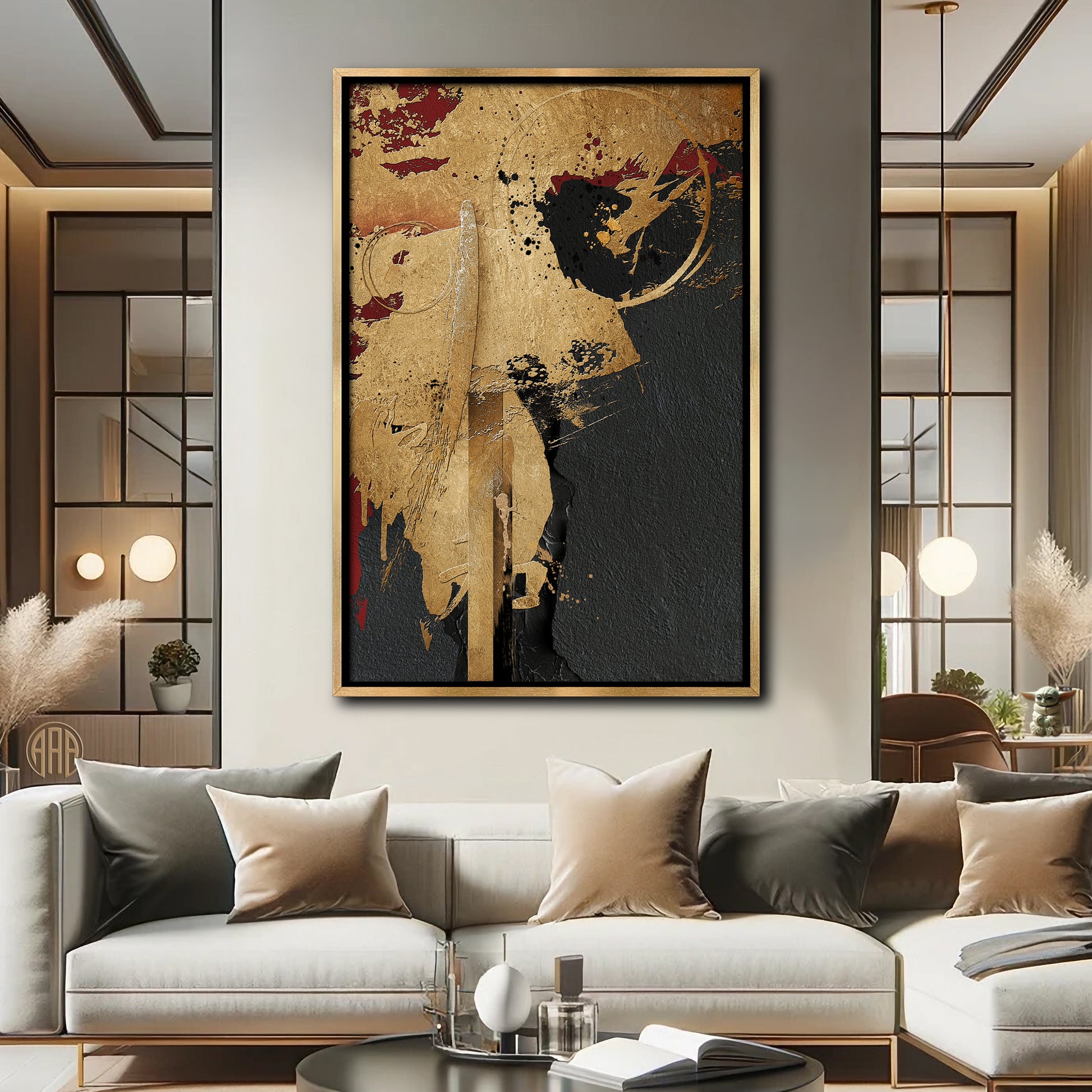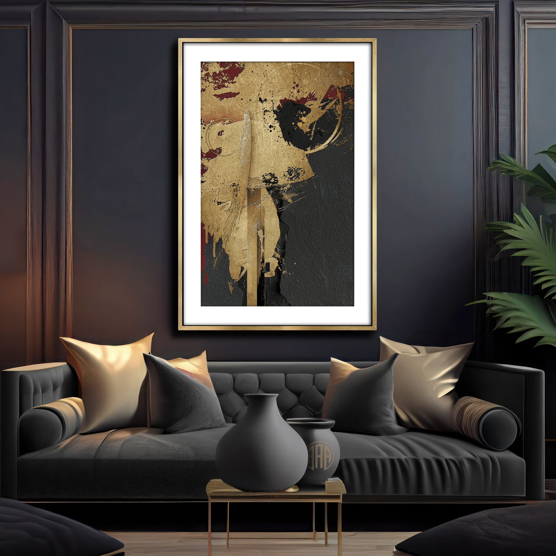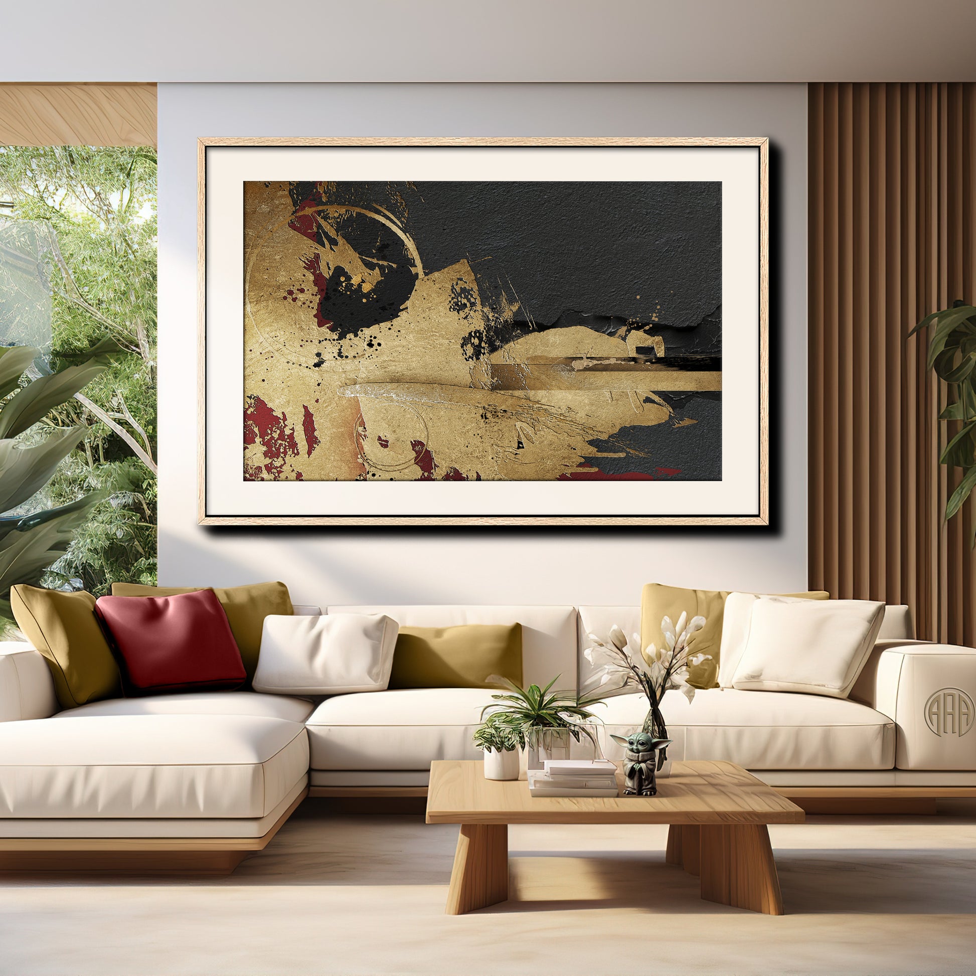 "Gilded Passion" radiates warmth and energy through its bold strokes of gold and rich earth tones. The dynamic interplay of colors evokes a sense of vitality, infusing any space with a passionate spirit that captivates the eye and heart.