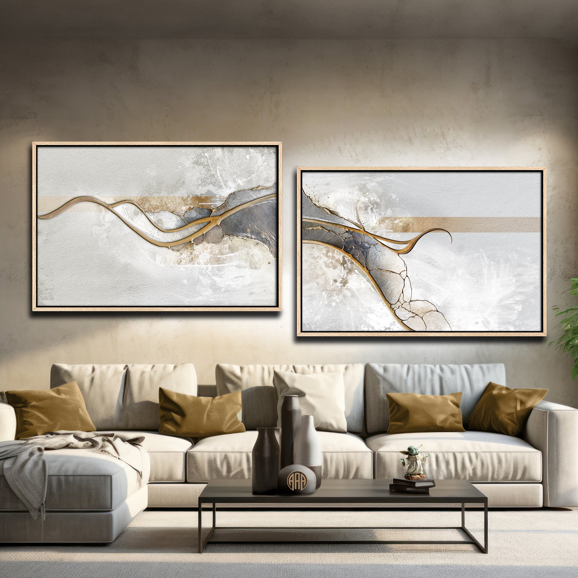 Gold and Grey Seduction began as a standalone piece, but as I worked on it, I saw the potential for a companion. Like some of my other works, it offers the freedom to hang it vertically or horizontally—alone or as a pair. You can rotate or flip the pieces depending on your mood or the feel of your space. It’s the kind of artwork that stays fresh just by being repositioned now and then.