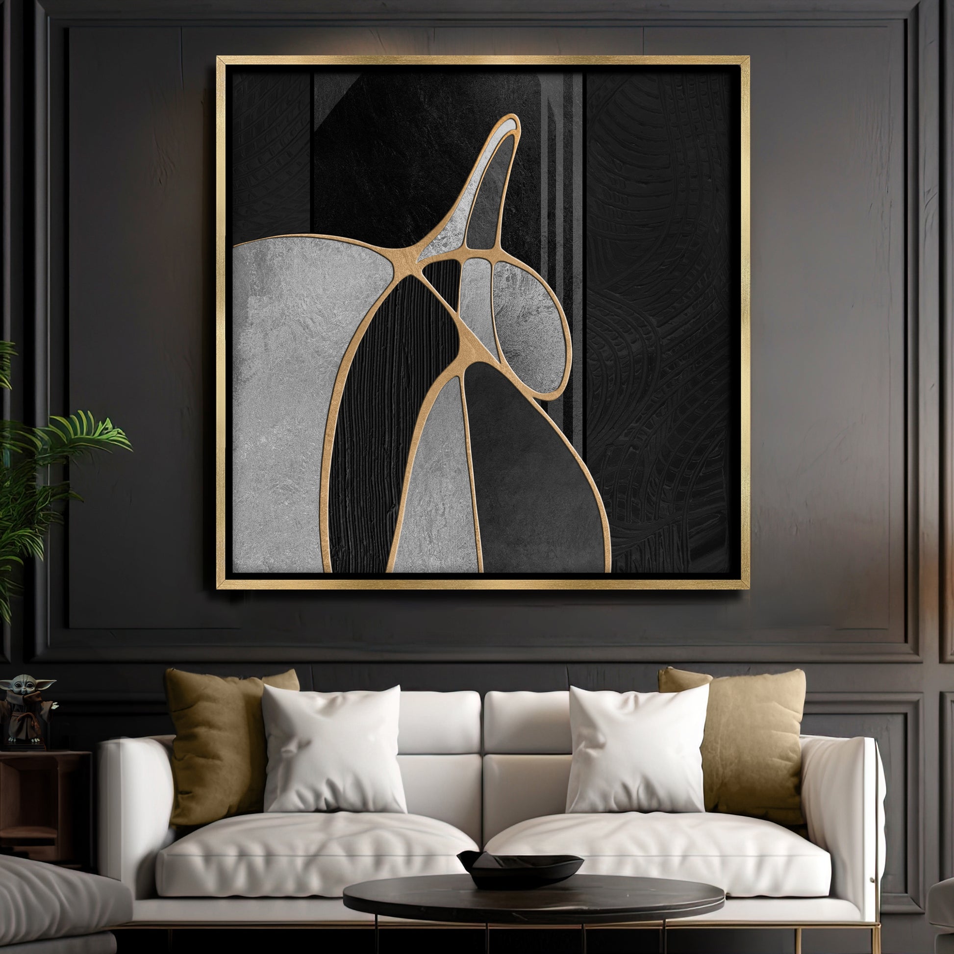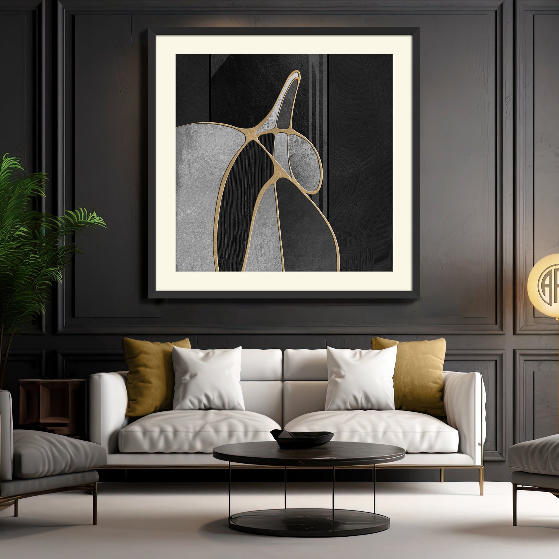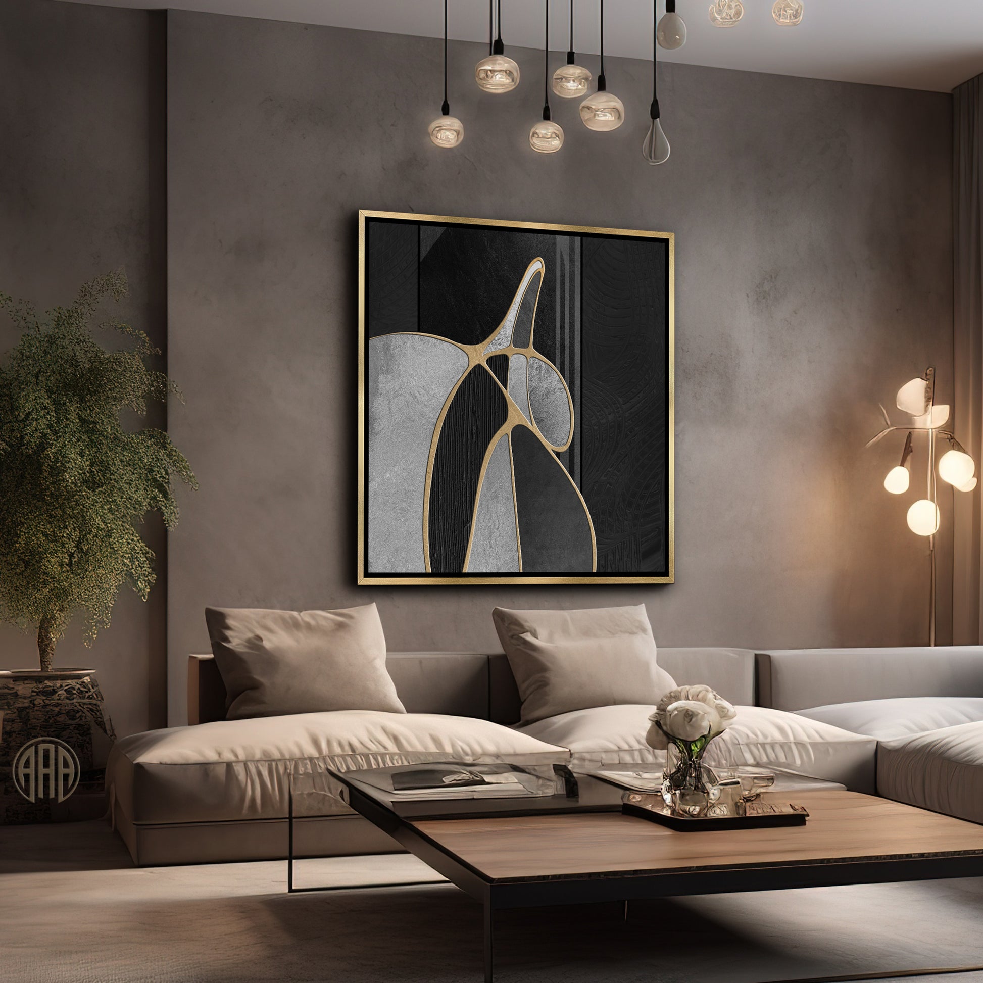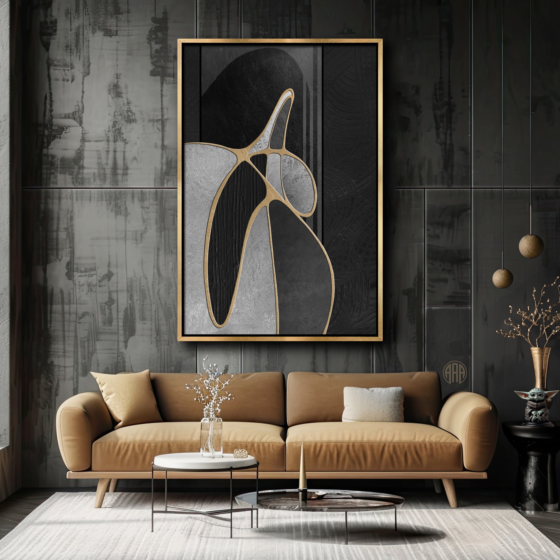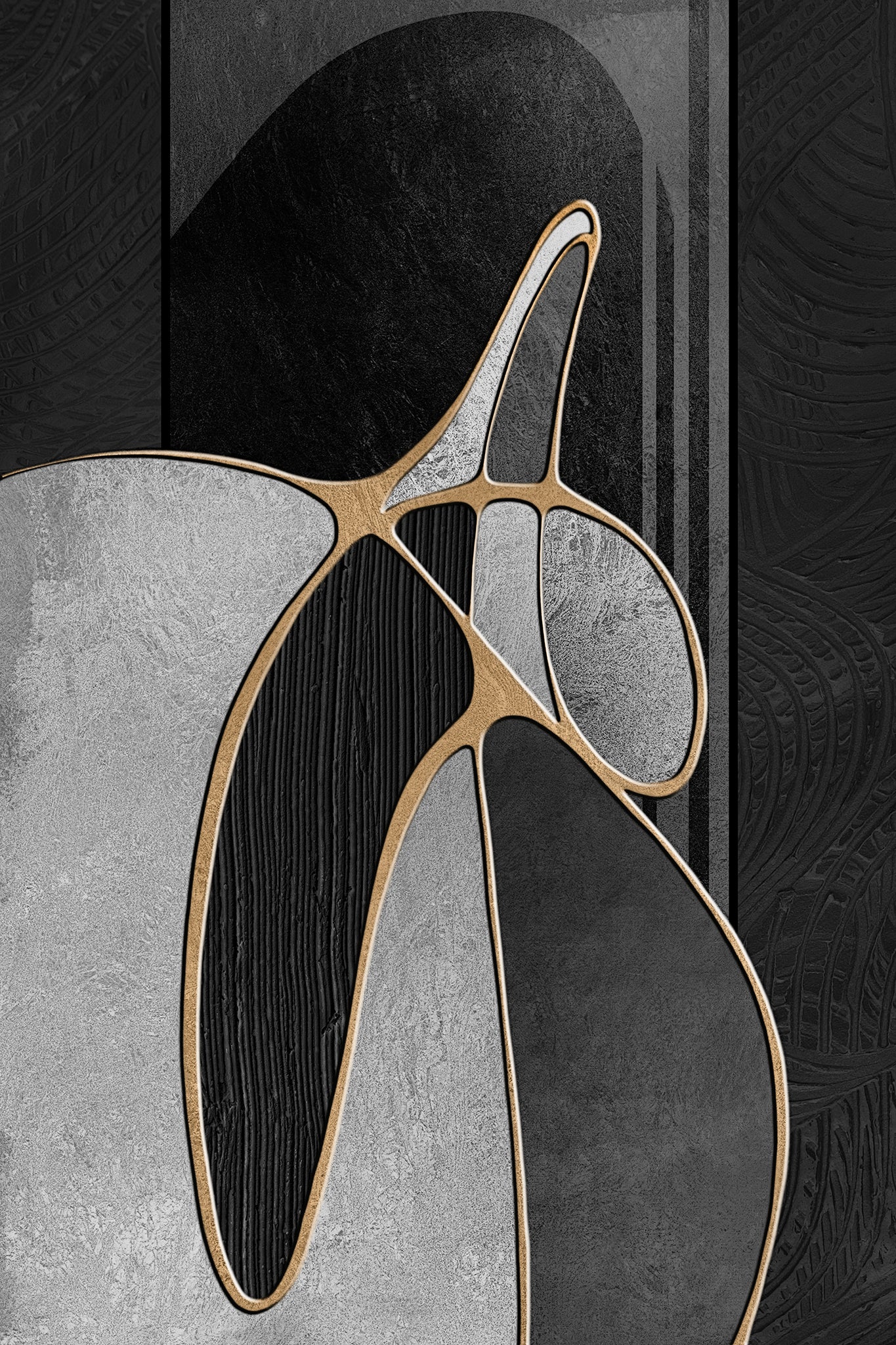 "Golden Midnight Allure" enchants with its deep black backdrop, intricately layered with shimmering gold accents that create a sense of depth and mystery. This captivating piece radiates an aura of elegance, effortlessly merging modern sophistication with timeless allure.