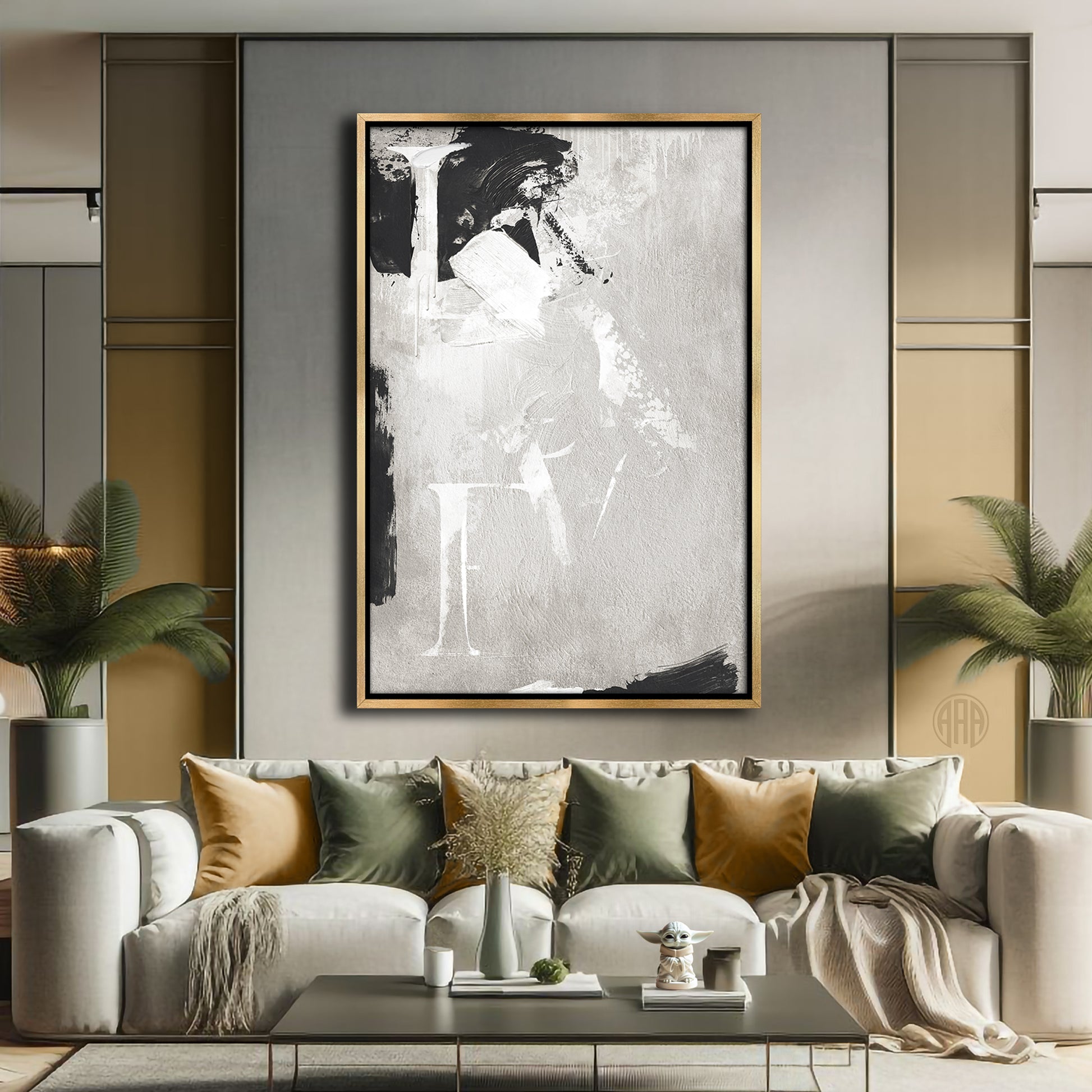 "Hidden Love" is a striking expression of emotion and mystery, featuring a deep black background partially concealed by textured white paint. Subtle layers reveal the word “LOVE” beneath the surface, creating an intriguing and intimate visual narrative. Bold black brushstrokes and delicate white drips add depth and contrast, evoking a raw, contemporary feel. Perfect for those seeking modern décor that brings both emotional resonance and visual impact to their space.