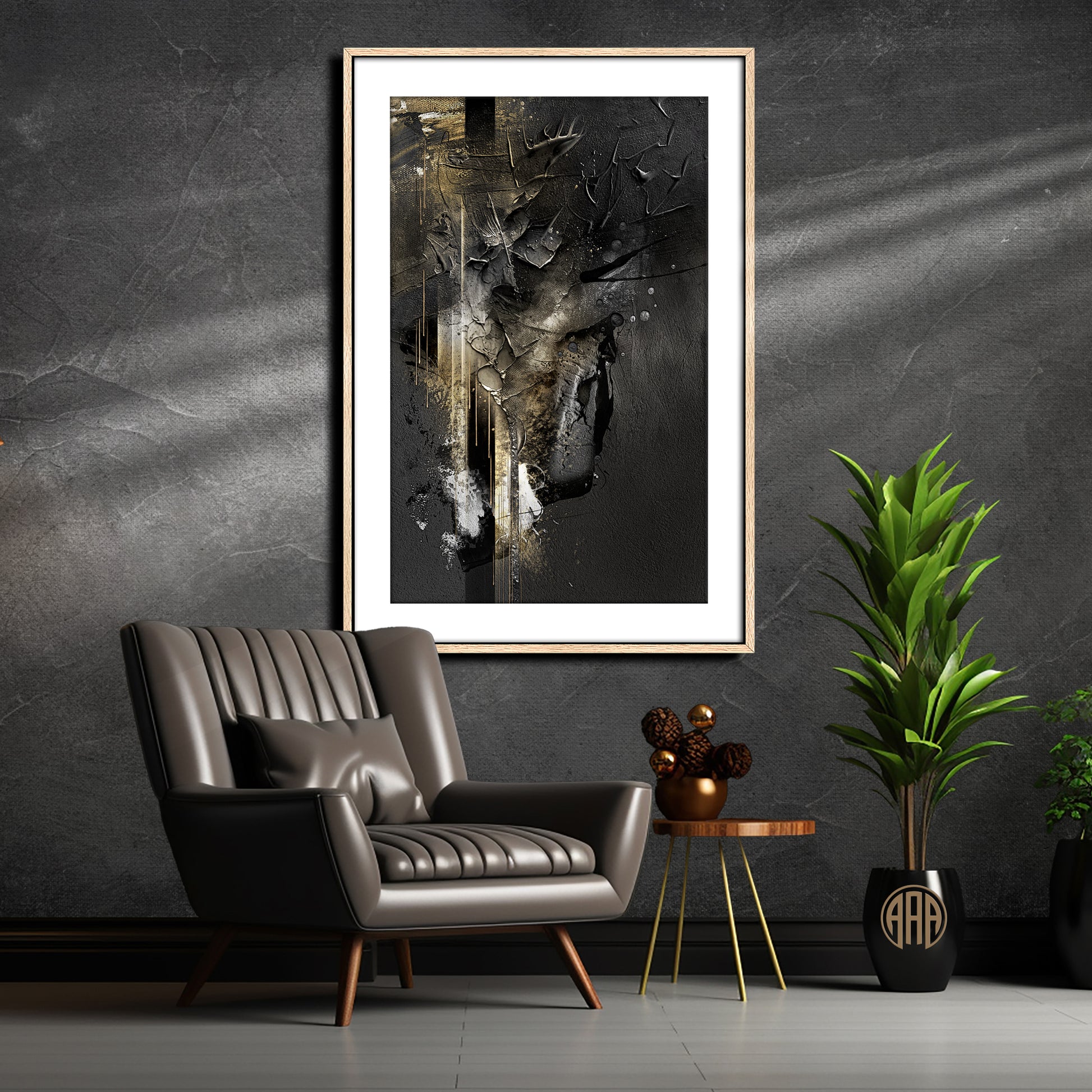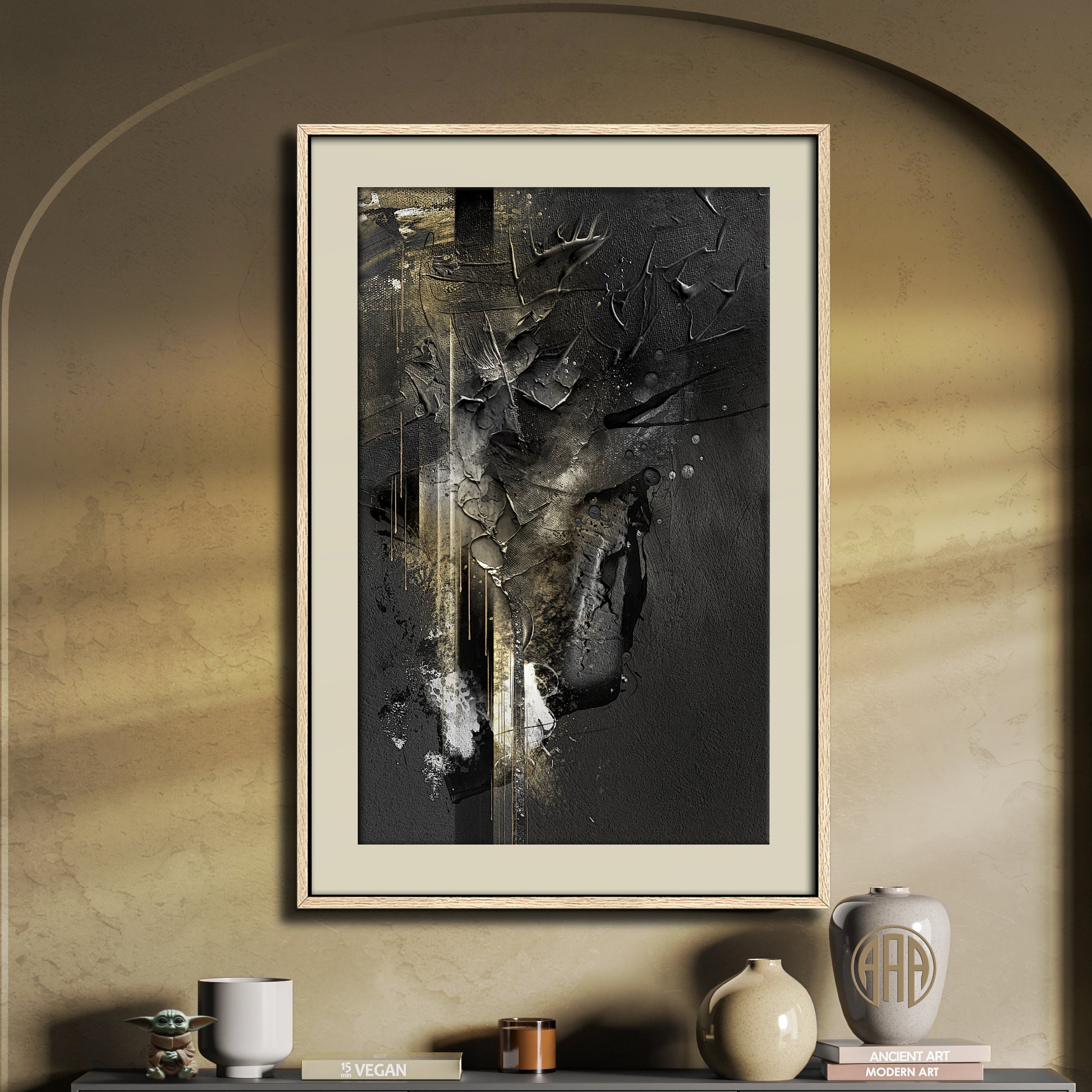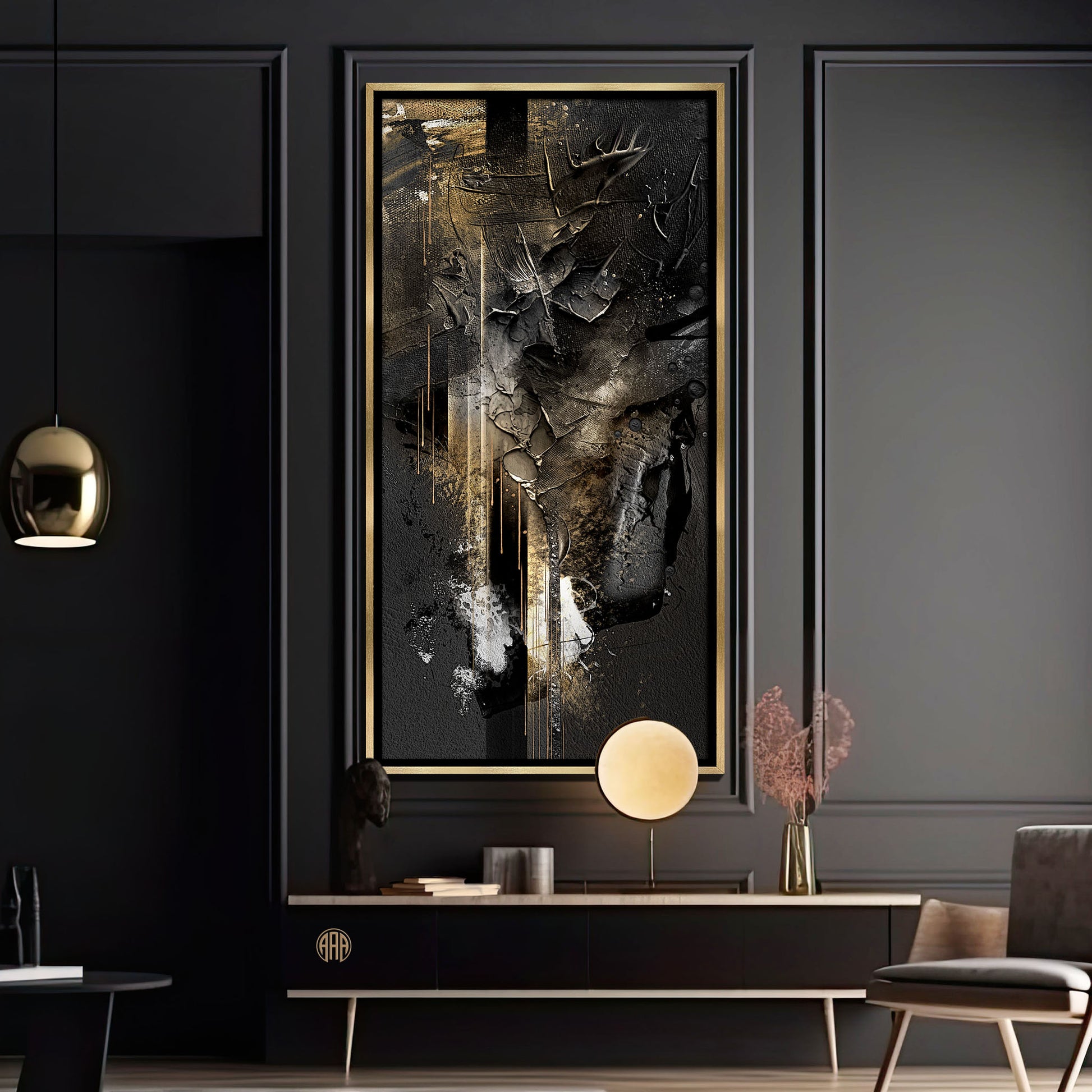 Ideal for modern and upscale interiors, this artwork transforms any space with its intense contrast and luxurious gold accents. It’s perfect for those wanting to add a touch of bold sophistication and drama to their home, office, or gallery space.