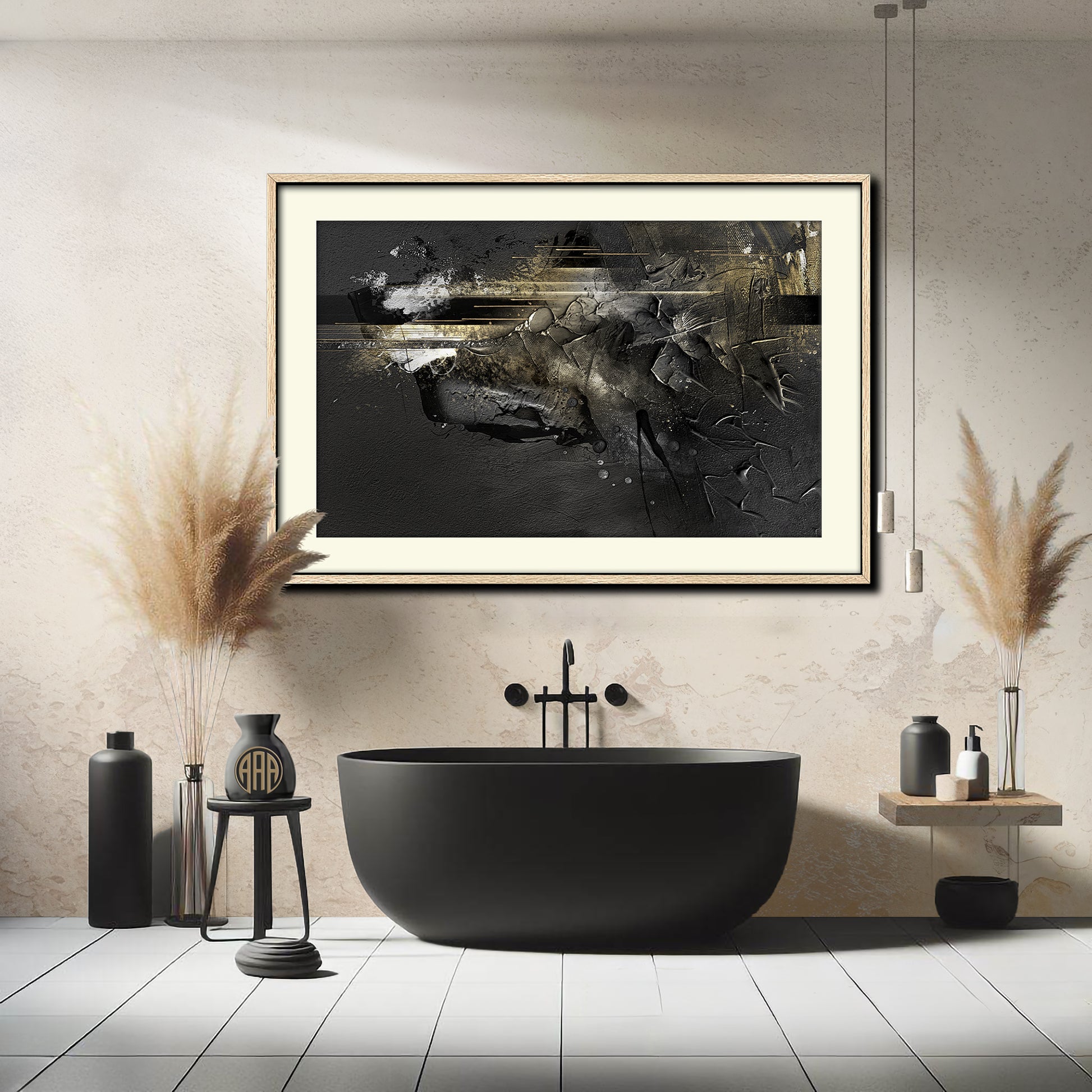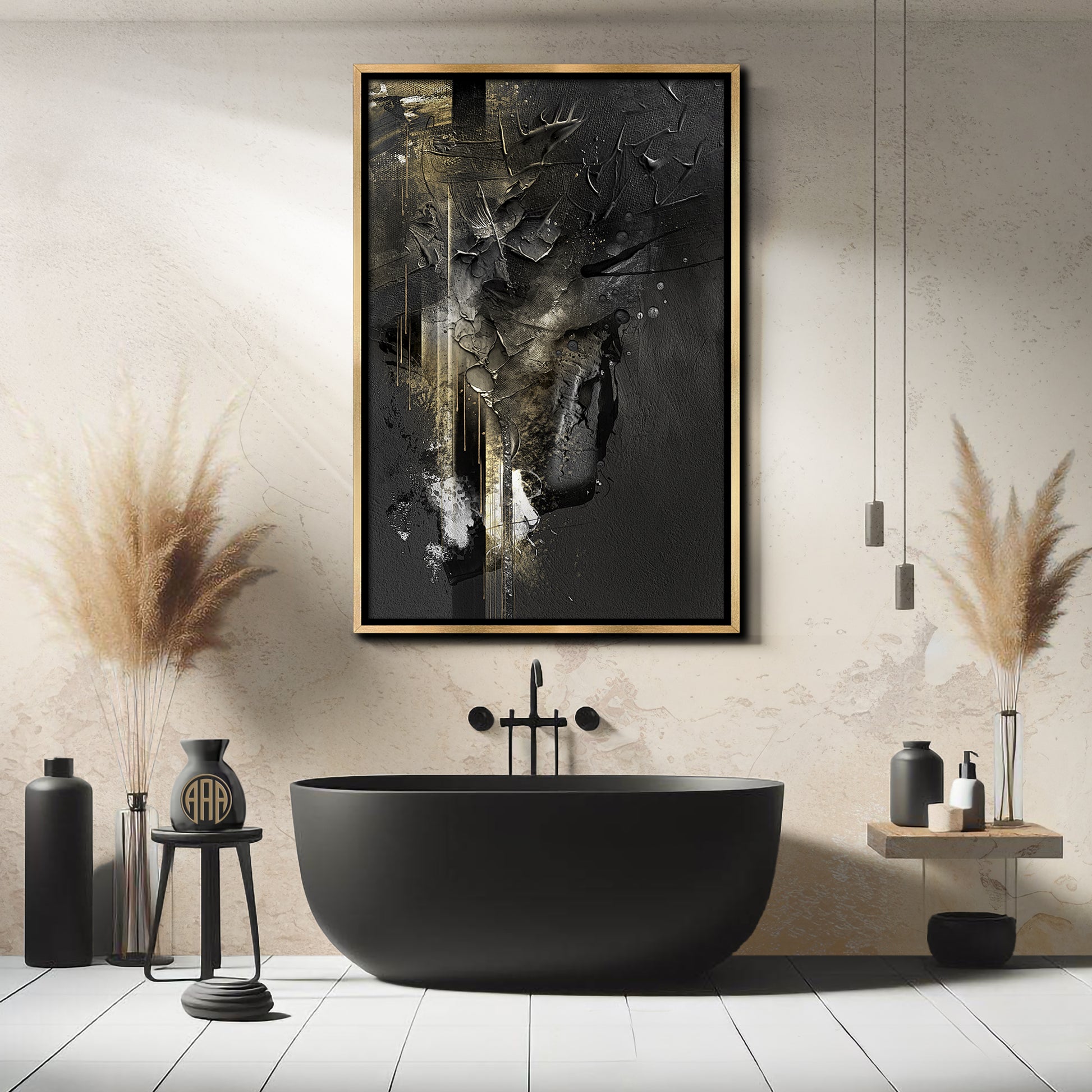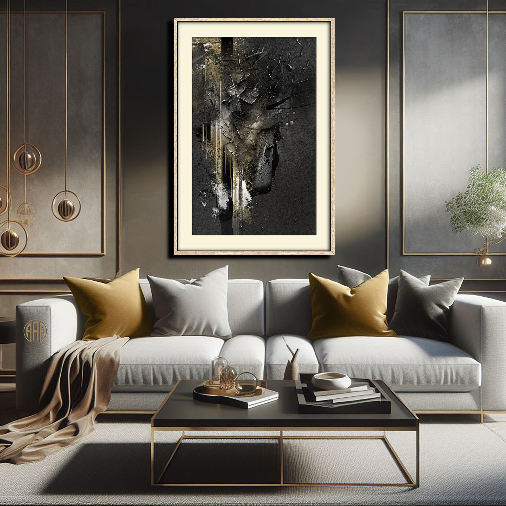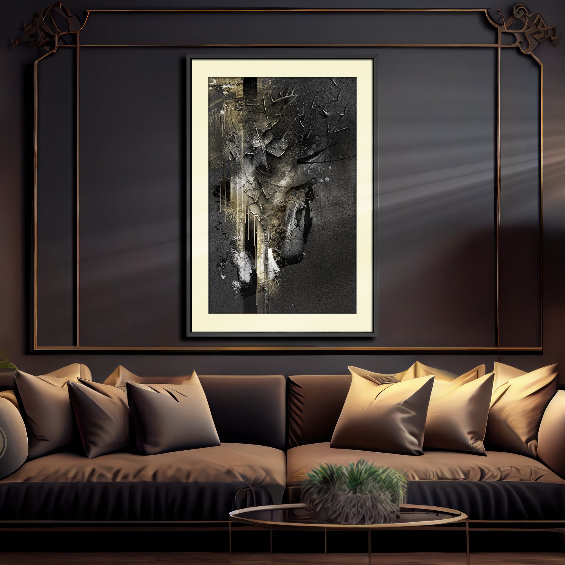 Ideal for modern and upscale interiors, this artwork transforms any space with its intense contrast and luxurious gold accents. It’s perfect for those wanting to add a touch of bold sophistication and drama to their home, office, or gallery space.