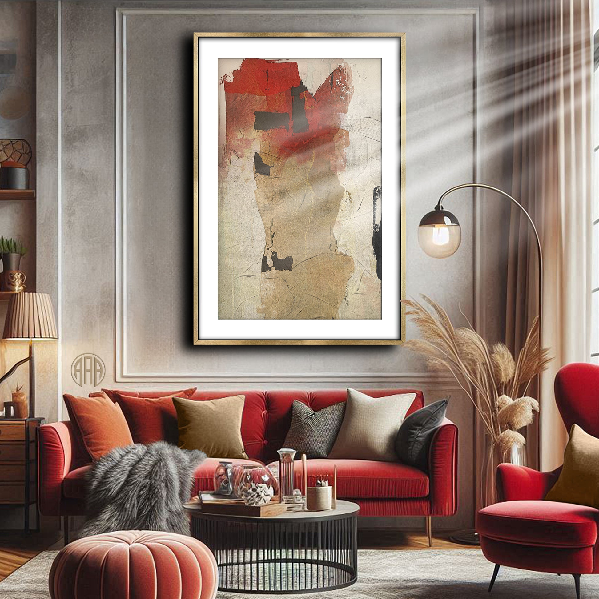 Perfect for adding energy and warmth, “Red Reverie” serves as a focal point for modern home décor, offering a harmonious blend of earth tones and vibrant accents. Ideal for living rooms, offices, or gallery walls, it brings both intrigue and a bold artistic statement to any space.