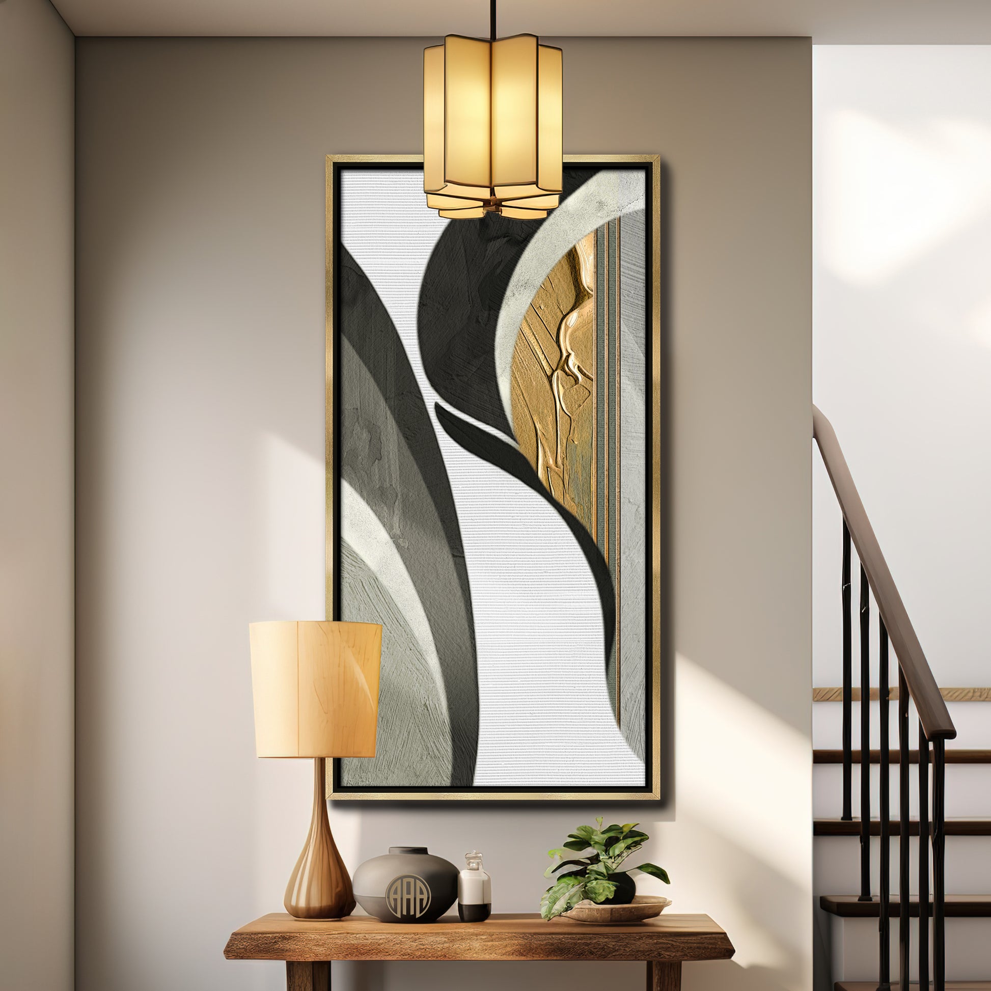 Together with its companions, this triptych creates a harmonious visual narrative that can be arranged horizontally, vertically, or asymmetrically, transforming any space into an alluring sanctuary of style and sophistication. Perfect for those seeking to enhance their decor with a refined artistic statement, each piece complements the others while maintaining its unique allure.